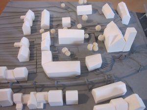 Nach Plänen des Wuppertaler Architekturbüros GNA und der Düsseldorfer Freiraumplaner LAND stellen: ein Quartierszentrum, eine Kita, integrativer und geförderter Wohnungsbau, die alte Stadtstruktur in zeitgemäßer Architektur wieder her.