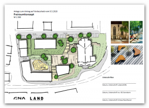 Dabei entsteht ein halböffentlicher, verkehrsfreier und begrünter Stadtplatz.